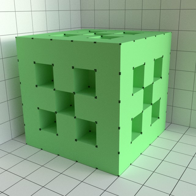 Sagen wir doch mal, die Kantenlänge eines Kästchens ist hier 8 mm. Wenn wir dann noch wissen, dass das Ding hier auf allen Seiten gleich aussieht, welches Volumen hat es dann?