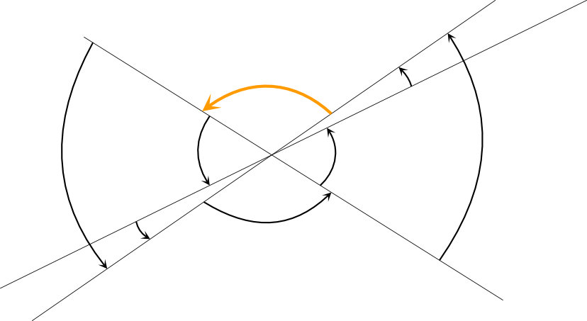 Bei drei Geraden, die sich in einem Punkt schneiden wird es mit dem korrekten Auffinden von Scheitelwinkeln und Nebenwinkeln etwas unhandlicher.