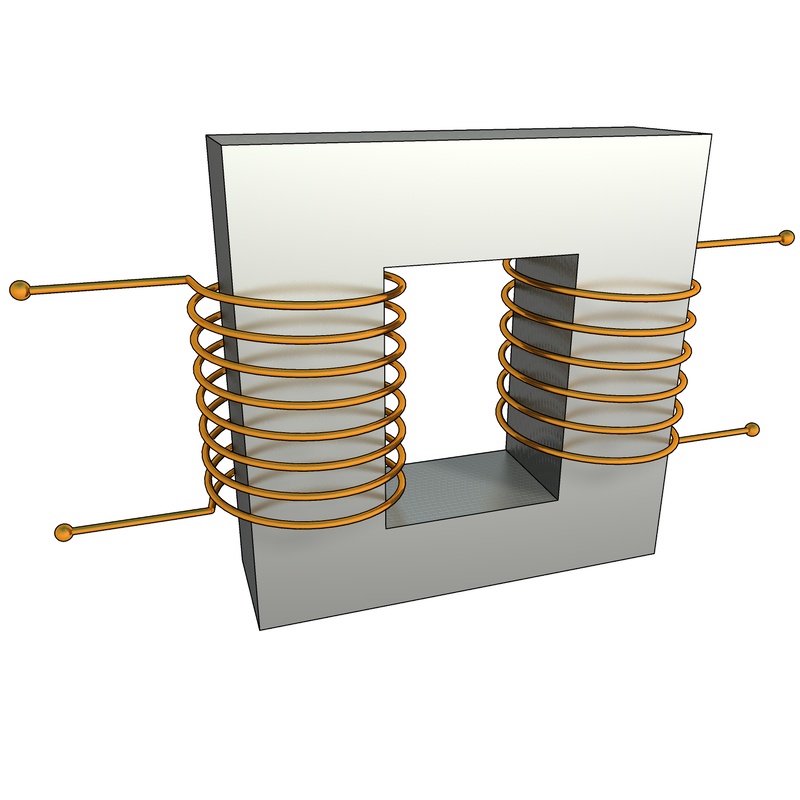 Eine eher symbolische Darstellung eines Transformators mit 8 und 6 Windungen